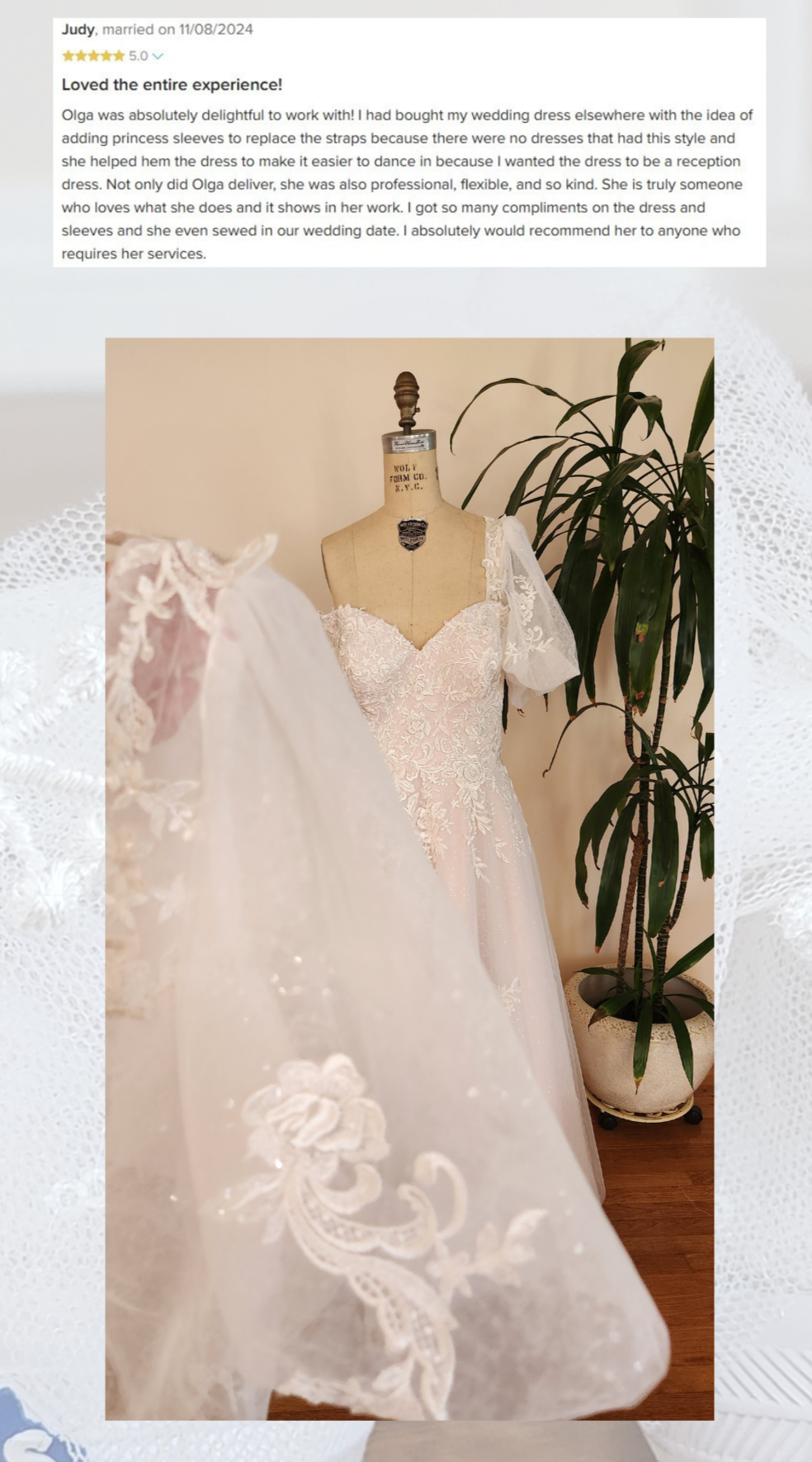 From custom wedding dress alterations to veil pairing and design, every step is designed with intention, so your wedding gown reflects not just a perfect fit, but your personal style and moment.